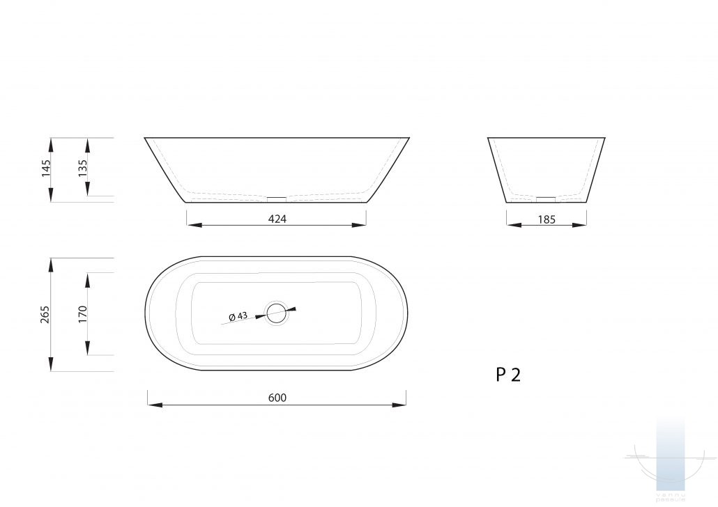 Vispool izlietne bez pārplūdes P2 600x265 mm, Balta