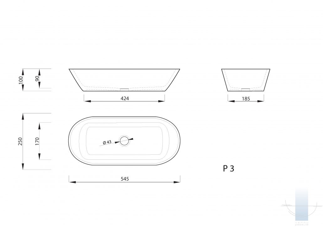 Vispool izlietne bez pārplūdes P3 545x250 mm, Balta